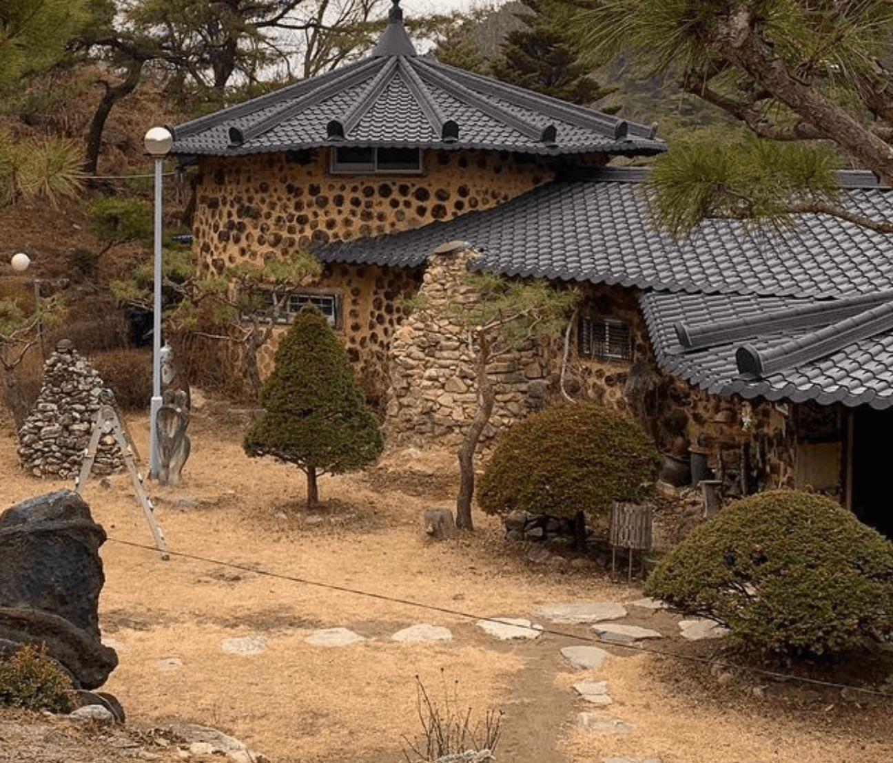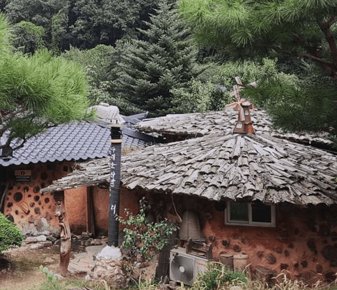 산으로 둘러싸여 단풍에 취해도 보고 넓은 마당을 걸어도 보고 숙소는 황토로 지어져 그냥 있어서 건강해지는 기분이겠네요.