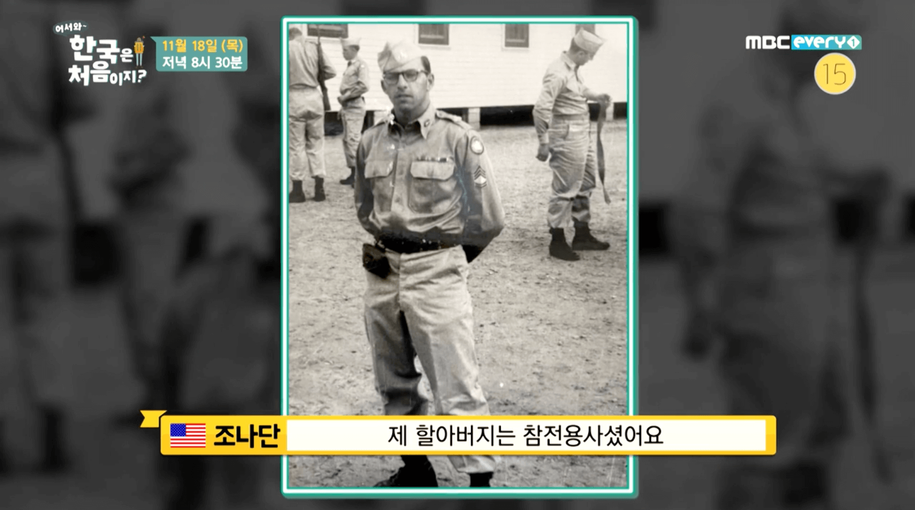 오늘 어서와~한국은 처음이지? 방송을 통해서 조나단의 할아버지, 토마스 프로우트가 1950년 한국전쟁 당시 20살의 나이로 이름도 들어보지 못한 나라를 위해 목숨을 받쳤던 역사를 살펴보게 될 예정입니다.