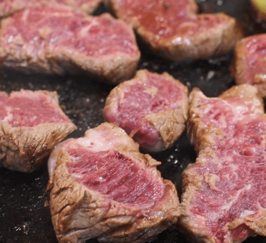 부위는 랜덤이라고 하네요. 이외 원하는 부위는 추가적으로 주문할 수 있는 방식이라고 합니다. 달구어진 돌판에 구워진 고기는 육즙을 그대로 머금고 있어 입에서 살살 녹는다고 합니다.