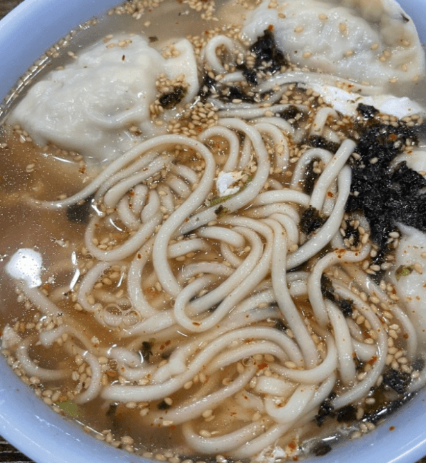 또한 이곳의 황해도식김치만두는 일품이니 꼭 드셔보시는걸 추천합니다. 또한 오늘의 하이라이트 칼만두는 김가루와 고추가루 깨소금까지 솔솔솔 뿌려져 있는 보기만해도 먹음직 스러운 메뉴였습니다.