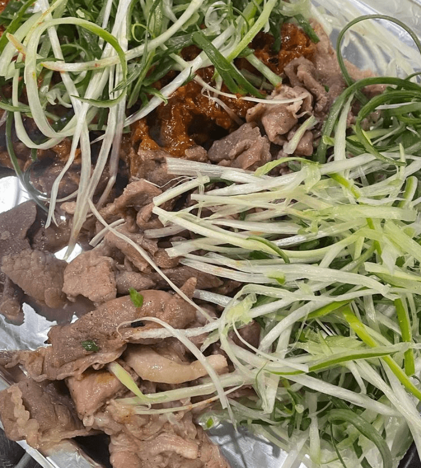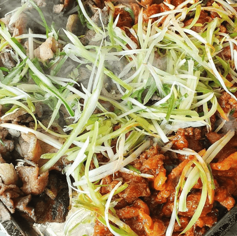 이미 많은 리뷰가 있을 정도로 사랑을 받는 식당이기에 더욱 그 맛이 궁금하더라구요. 연탄불향 가득 입힌 돼지불고기 위해 파를 얇게 썰어 가득 올려주면 파불고기가 완성됩니다.