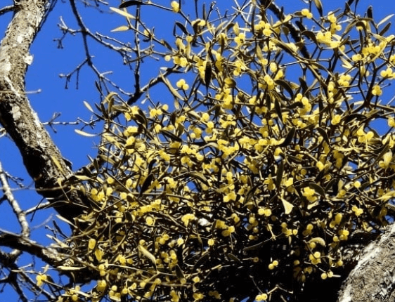 쌍떡잎 단항과 식물인 겨우살이는 다른 식물의 뿌리나 줄기에 기생합니다. 늦가을 시기에 싹을 틔워서 다른 식물의 영양을 빨아먹고 그것으로 꽃과 열매를 피운다고 하네요.