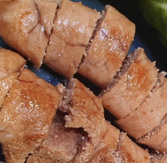 항아리에 저장하여 귀한 손님이 오면 대접한 명란젓은 젓갈로 담가 먹기도 하지만 송이 기름에 구워먹기도 한다고 해요! 명란뿐아니라 각종 명태 내장들을 다지고 볶아 명태 안에 소를 만들어 넣어 예전부터 집마다 만들어 먹던 것이 바로 명태 순대라고 합니다