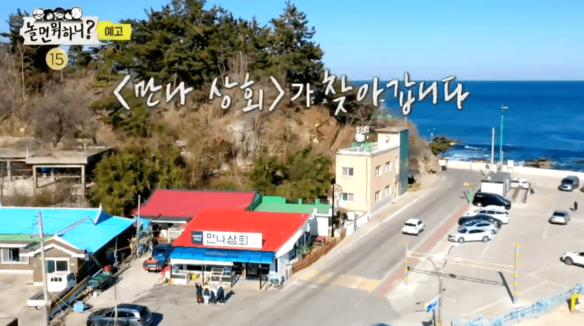 벌써부터 좌충우돌 멤버들간의 케미가 기대가 되는데요. 이곳 <만나 상회> 바로 앞 펼쳐니는 강원도 동해안 바다를 보니 당장이라도 여행을 떠나고 싶다는 생각이 들기도 했는데요. 이번주 부터 새롭게 시작하는 놀면뭐하니? <만나 상회> 특집 촬영장소는 아래쪽에서 확인부탁드립니다.