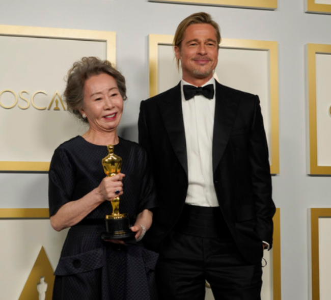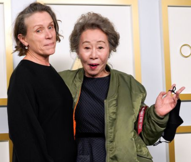 배우 윤여정 미나리 오스카 여우조연상 드레스 수상소감 항공점퍼