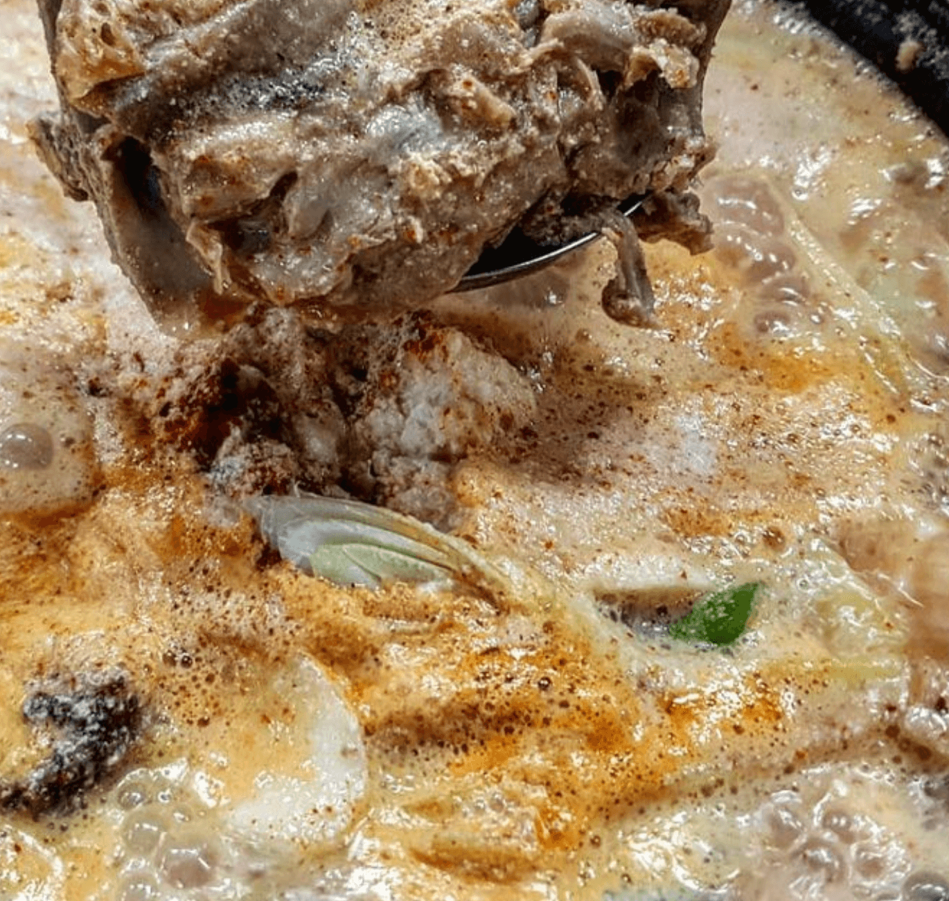 감자탕에 묵은지와 콩비지가 가득 들어있어서 고소한 맛이 너무 좋다고 하네요. 처음에는 비주얼이 약간 그럴 수 있지만 모두들 이렇게 맛있어도 되나 싶을 정도로 굉장히 만족한다고 합니다.