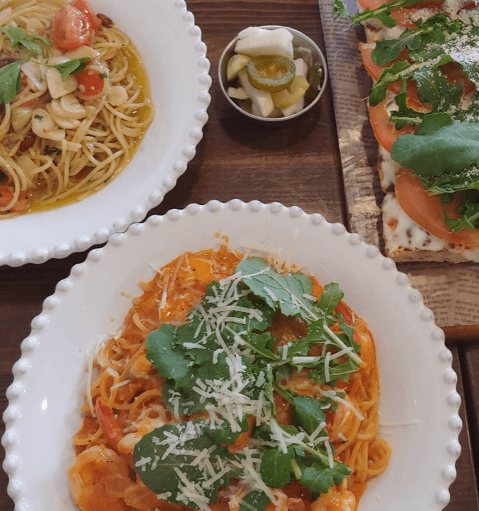 파스타는 알리오올리오, 까르보나라, 봉골레, 아마트리치아나, 쉬림프 로제, 감바스, 페스카토네 까지 너무 다양해서 하나씩 다 맛보고 싶을 정도 였답니다.
